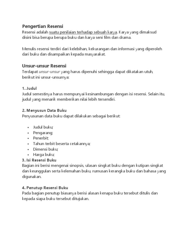Lalu menurut kbbi (kamus besar bahasa indonesia), resensi merupakan penjelasan dari sebuah buku.